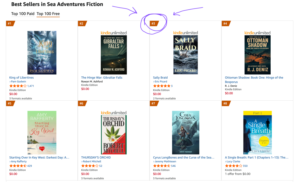 Please get your free copy now. It hit number 3 in Sea Adventure Fiction today. And you can add an audiobook version for just $1.99!